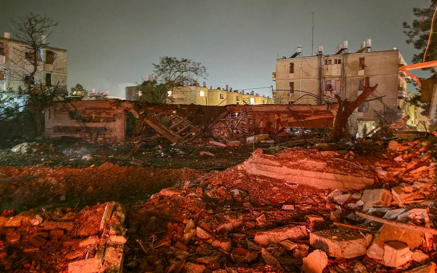 In Arad, emergency workers combed through the rubble of heavily damaged buildings.
