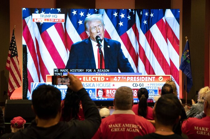 2024 නොවැම්බර් 06; රියාද්: එක්සත් ජනපද ජනාධිපතිවරණයේ විස්තීර්ණ ජයග්රහණයෙන් පසු අරාබි නායකයින් බදාදා ඩොනල්ඩ් ට්රම්ප්ට සුබ පැතූහ.