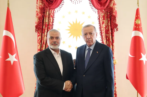 ඊශ්රායල සොල්දාදුවෙකු වූ ගිලාඩ් ෂාලිට් නිදහස් කර ගැනීමේ කණ්ඩායමට ගිවිසුම ලබා ගැනීමට තුර්කිය උදව් කළ 2011 සිට හමාස් හට තුර්කියේ කාර්යාලයක් තිබේ. Erdogan නිතර ආගන්තුක වූ කණ්ඩායමේ දේශපාලන නායකයා වන Haniyeh සමඟ සබඳතා පවත්වා ඇත.