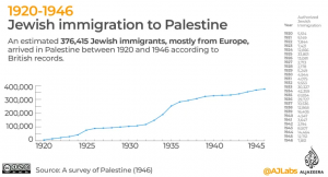 1923 දී බ්රිතාන්ය ජනවරමක් නිර්මාණය වූ අතර එය 1948 දක්වා පැවතුනි. එම කාලය තුළ බ්රිතාන්යයන් මහා යුදෙව් සංක්රමණ සඳහා පහසුකම් සැලසූහ – නව පදිංචිකරුවන්ගෙන් බොහෝ දෙනෙක් යුරෝපයේ නාසිවාදයෙන් පලා යමින් සිටියහ – ඔවුන් විරෝධතා සහ වැඩ වර්ජනවලට ද මුහුණ දුන්හ. පලස්තීනුවන් තම රටේ ජනවිකාස වෙනස් වීම සහ ඔවුන්ගේ ඉඩම් යුදෙව් පදිංචිකරුවන්ට පැවරීමට බ්රිතාන්යයන් රාජසන්තක කිරීම ගැන කලබල විය.