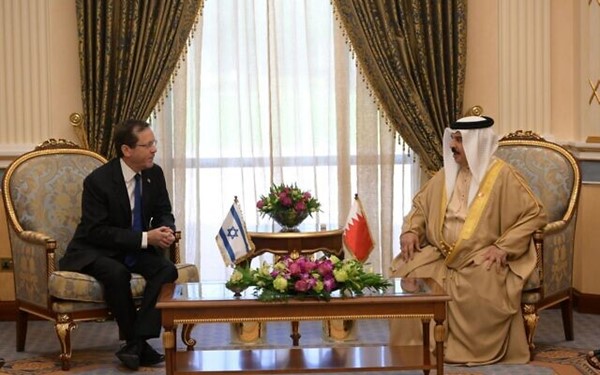 4 டிசம்பர் 2022: இஸ்ரேலிய ஜனாதிபதி ஐசக் ஹெர்சாக், பஹ்ரைன் மன்னர் ஹமத் பின் இசா அல் கலீஃபா மற்றும் பட்டத்து இளவரசர் சல்மான் பின் ஹமத் அல் கலீஃபா ஆகியோருடன் இஸ்ரேலிய அரச தலைவர் ஒருவரின் சிறிய வளைகுடா இராச்சியத்திற்கான முதல் பயணத்தின் போது பேச்சுவார்த்தை நடத்தினார்.