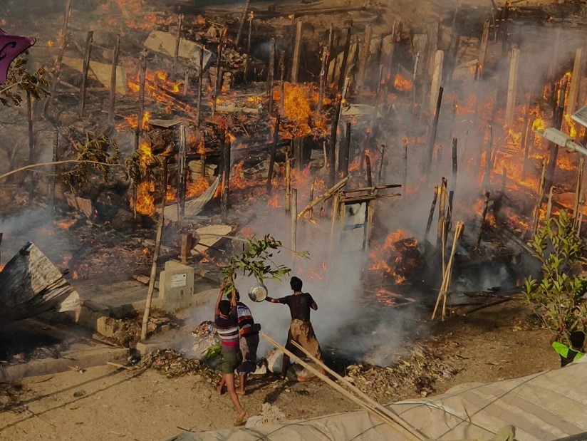அண்டை நாடான மியான்மரில் வன்முறை மற்றும் துன்புறுத்தலுக்கு ஆளான சுமார் 1.2 மில்லியன் ரோஹிங்கியா முஸ்லிம்கள் வசிக்கும் தென்கிழக்கு கடலோர மாவட்டமான காக்ஸ் பஜாரில் ஞாயிற்றுக்கிழமை பிற்பகல் தீ விபத்து ஏற்பட்டது.