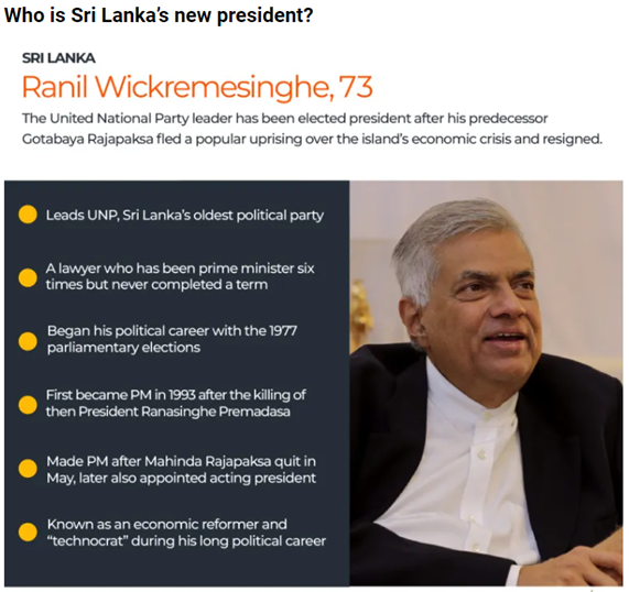 ஜூலை 20, 2022: ஆறு முறை இலங்கை பிரதமராக இருந்த ரணில் விக்ரமசிங்கே அதிபரானார்.