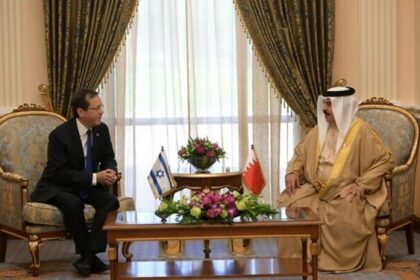 4 டிசம்பர் 2022: இஸ்ரேலிய ஜனாதிபதி ஐசக் ஹெர்சாக், பஹ்ரைன் மன்னர் ஹமத் பின் இசா அல் கலீஃபா மற்றும் பட்டத்து இளவரசர் சல்மான் பின் ஹமத்…
