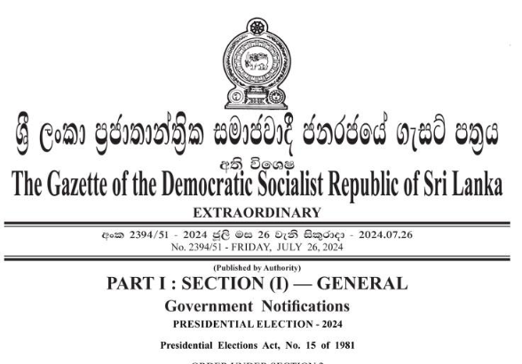 ஜூலை 26, 2024; கொழும்பு: நீண்ட கால யூகங்களுக்கும் விவாதங்களுக்கும் முற்றுப்புள்ளி வைத்து ஜனாதிபதி தேர்தல் செப்டம்பர் 21 ஆம் தேதி சனிக்கிழமை நடைபெறும் என தேர்தல் ஆணையம் அதிகாரப்பூர்வமாக அறிவித்துள்ளது. ஆகஸ்ட் 15 ஆம் தேதி வேட்புமனுக்கள் ஏற்றுக்கொள்ளப்படும் என்றும்,…